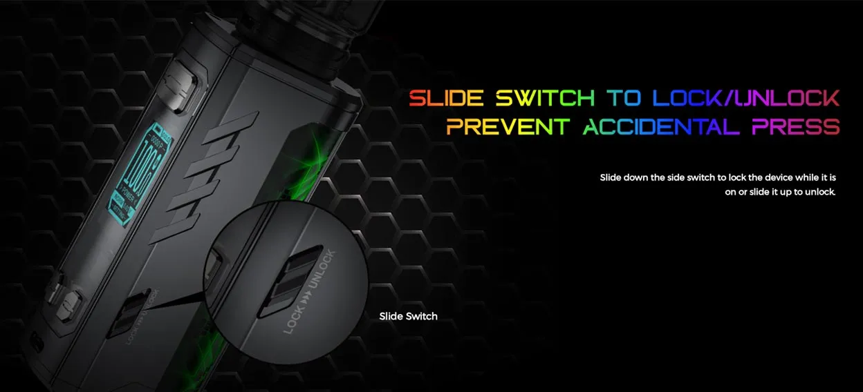 Kit consists of Fireluke Solo Tank and Maxus Solo 100W Mod, powered by an external 18650/20700/21700 battery and charged with a 5V/2A USB Type-C cable. It has a cool mood lighting design that will attract lots of attention no matter whether it’s day or night. Besides, this mod also features FMOS 3.0, FM CHIP 3.0, a 1.06-inch OLED screen, multiple output modes, and a slide switch, powerful enough to enhance your vaping experience.