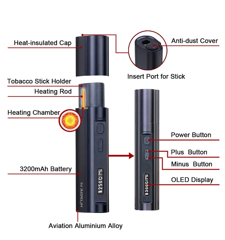 Hitaste P8 Heat Not Burn Device. The HiTaste brand is known for its high-quality devices, but this one missed the mark. While very attractive in appearance, Hitaste P8 HNB Heat Not Burn Tobacco Cigarette Heating Device is less powerful than its predecessor HiTaste P6. It also has some qualities that our team didn’t love, such as having a weirdly shaped heating chamber that makes cleaning difficult and not giving a vibration to let you know when it’s ready to use. Overall Hitaste P8 Heat Not Burn Tobacco Cigarette Heating Device isn’t a bad device, but it doesn’t live up to the standards set by other HiTaste devices. We’d recommend checking out HiTaste P6 instead.