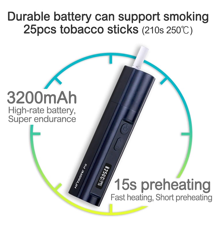 3200mah durable battery and 15s preheating support smoking 25pcs tobacco sticks(210s 250℃)